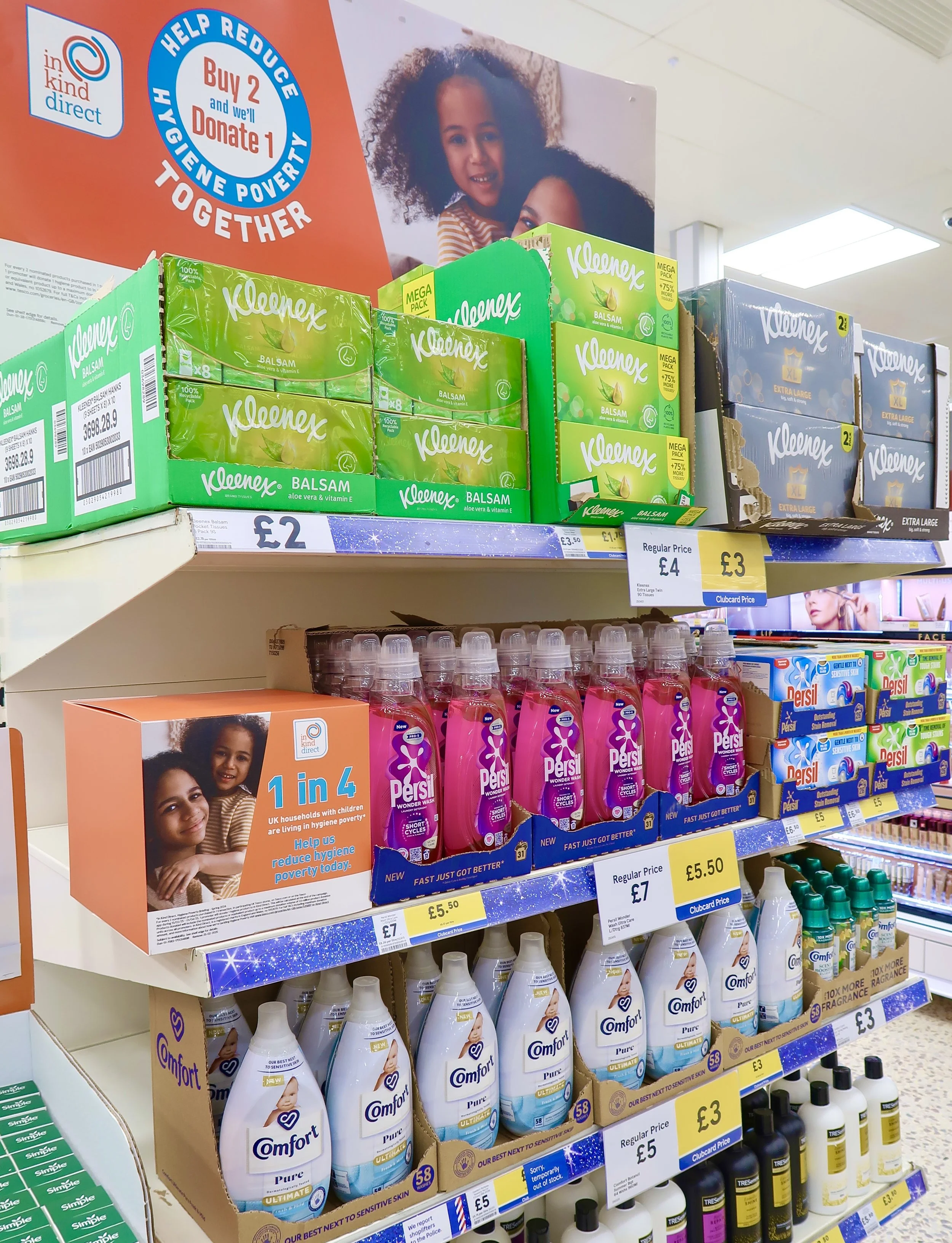 Hygiene poverty currently affects 2.2m families living in the UK, so we were proud to help In Kind Direct partner with Tesco and major suppliers for their largest campaign yet to support this growing issue. Throughout February and March Tesco shoppers could donate one personal care product to those living in hygiene poverty for every two purchased in-store.